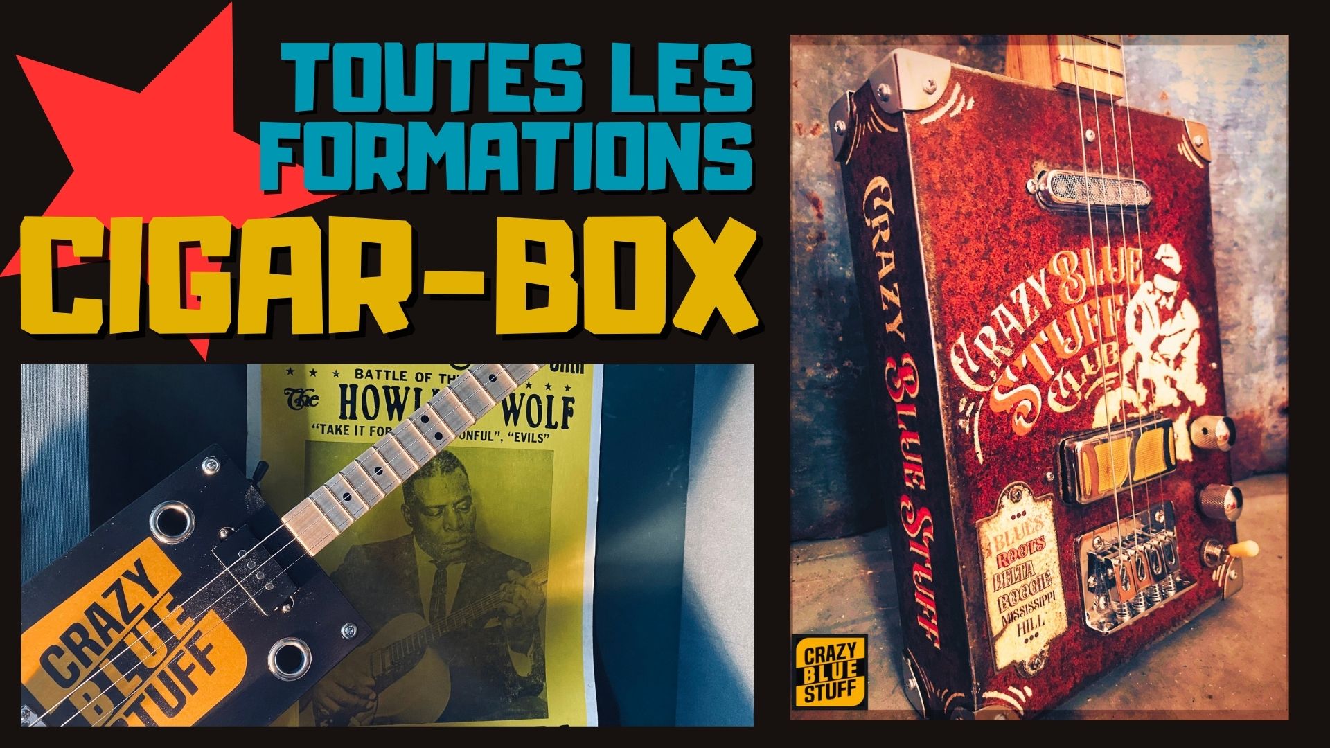 TOUTES LES FORMATIONS "CIGAR-BOX" REUNIES DANS UN SEUL PACK ! - Cigar-Box débutant. - Cigar-Box Blues. - cigar-Box 4 Cordes.